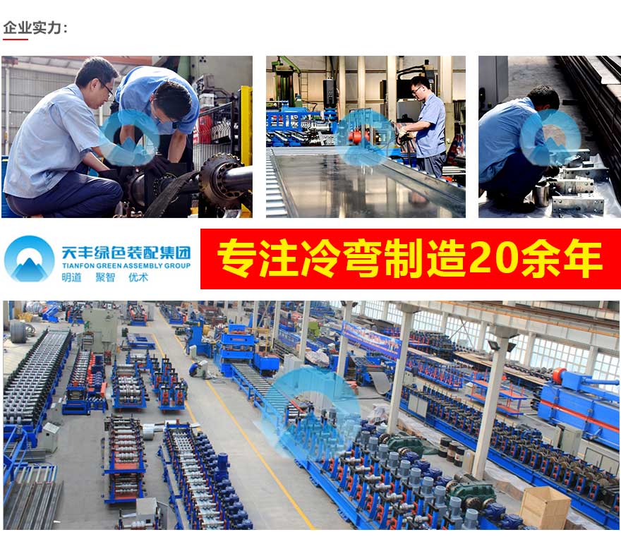 TF鋼板倉加強筋生產(chǎn)線具備中板開卷、校平、輥壓成型,定長沖孔、剪切、卸料等自動化流水生產(chǎn)功能。每一成型道次單獨電機驅(qū)動,節(jié)能減耗;主機一套輥輪模具可生產(chǎn)1.5-8mm厚的型鋼制件;專用大型壓力機,整體沖孔,確保裝配位置高精度要求;
